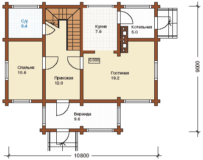 Дерев'яний заміський котедж з нескладної двосхилим дахом, а також з функціональної, і, в той же час, затишній плануванням, може стати вашим постійним місцем проживання. Образ будинку характерний своїм вираженим головним фасадом, сформованим вхідною частиною на першому і нависає над нею балконом - на другому поверхах. Наявність на фасадах великої кількості віконних прорізів, деякі з яких захоплюють двусветние внутрішні простору, дозволяють домогтися максимального природного освітлення інтер'єру в денний час доби. Будинок з дерева - самий «здоровий» будинок.