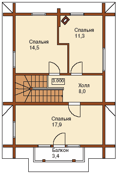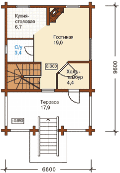 Невеликий дачний будинок ідеально підходить для розміщення на присадибній ділянці і може бути використаний як для сезонного, так і для постійного проживання. Котедж здатний зацікавити людей з усталеним смаком і традиційним уявленням про заміське житло. Планування приміщень раціональна і забезпечує максимум комфорту власникам будинку. Невелика тераса, запроектована у вхідній зоні, може використовуватися як літня їдальня в теплу пору року. Перший поверх представлений, як зона денного перебування і вечірнього відпочинку. Вітальня з каміном може послужити прекрасним місцем для прийому гостей і для спілкування сім'ї. На другому поверсі знаходяться особисті апартаменти господарів. Одну зі спалень при необхідності можна переобладнати під кабінет або використовувати як кімнату для гостей