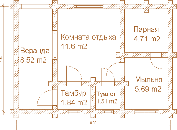 Загальна площа бані 43,6м2
